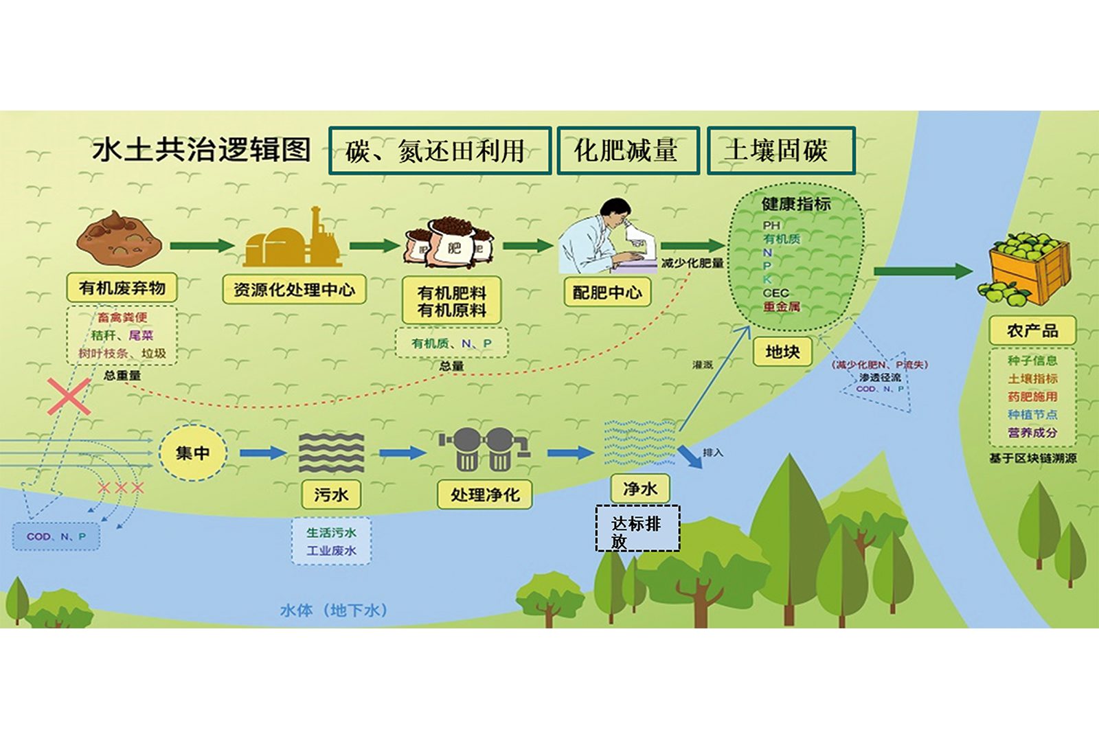 水土共治,绿色发展,精准扶贫,打造环水一体生态农业。我们倡导“治水先治土”,从土壤修复开始,减少氮磷进入淡水及沿海水体。
